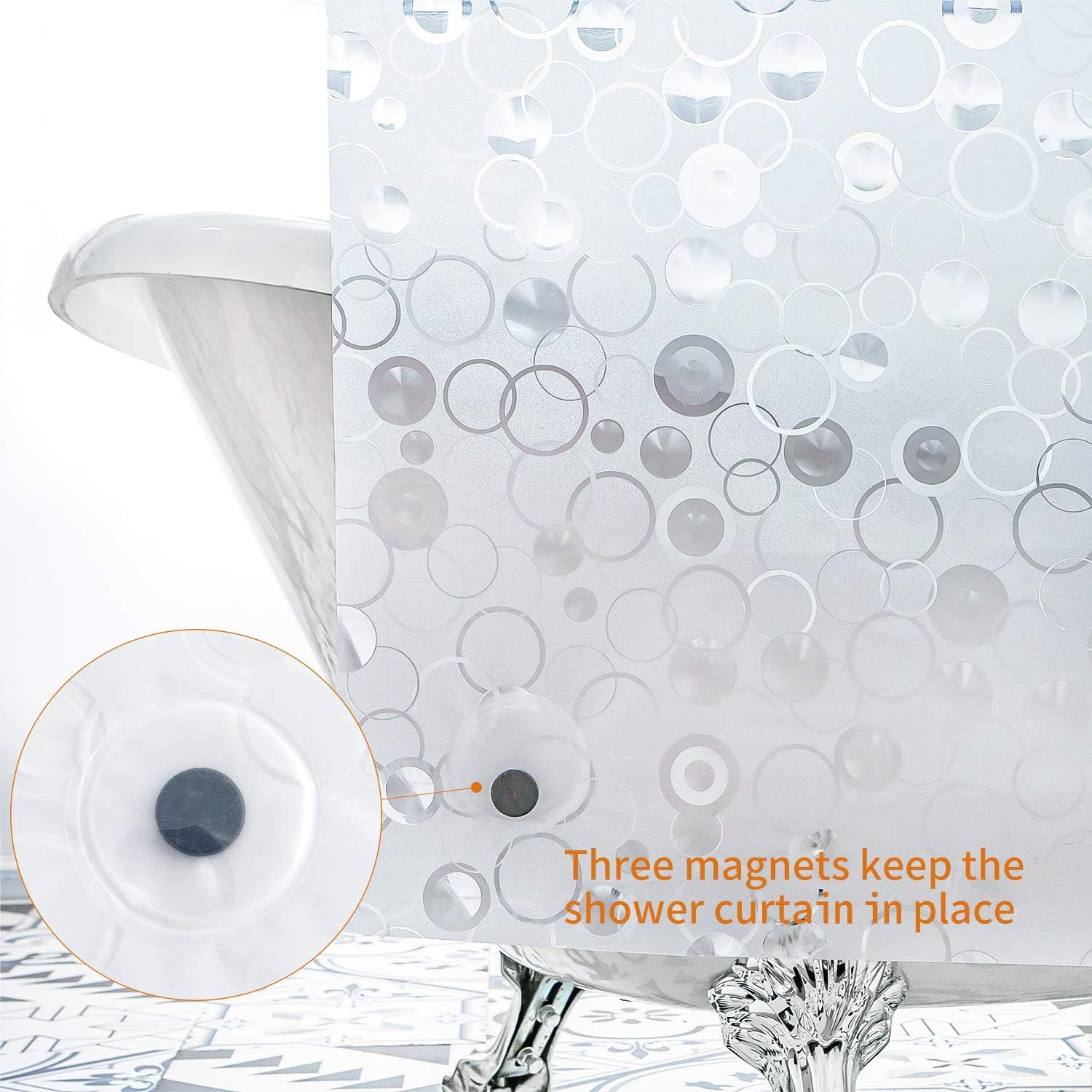Bathroom Shower Curtain Liner, 72×72 Inch 3D Frosted Bubble Design, Heavy Duty Waterproof Thick Plastic Liner with Magnets and 12 Hooks