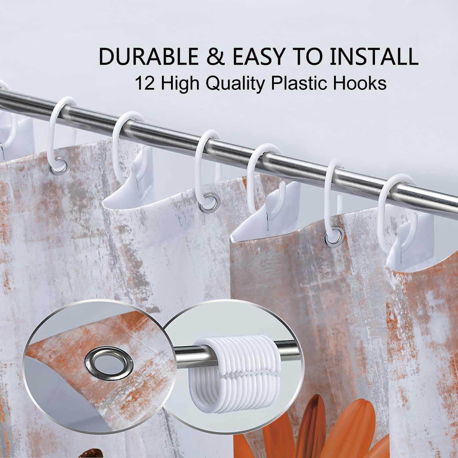 – Easy to Install – Includes 12 reinforced metal grommets and 12 hooks for quick, secure setup. Curtain glides smoothly for daily use.