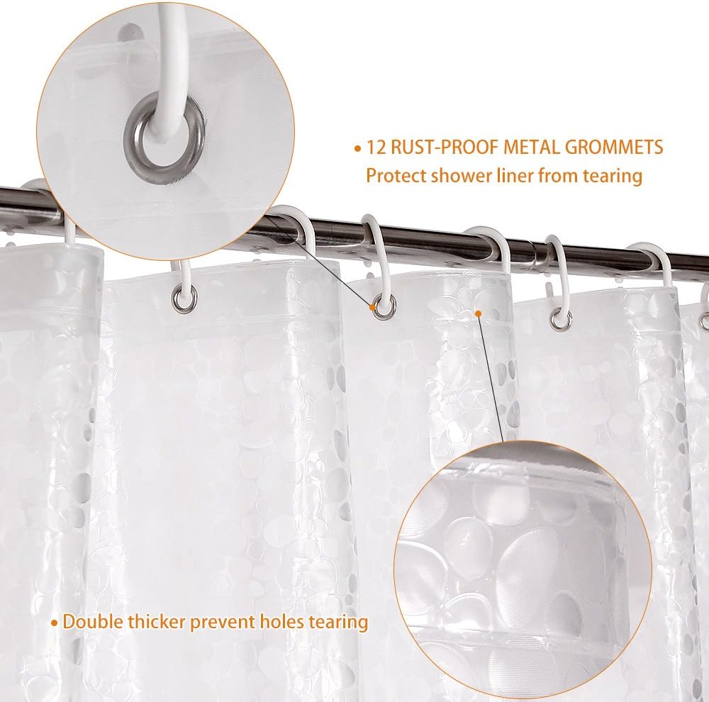Shower Curtain, Water Repellent, No Chemical Smell, Chlorine-Free Liner, Heavy Duty for Bathtubs or Stalls, 72 x 72, with 12 Hooks